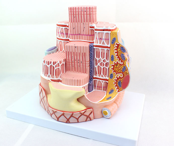 QM/J1169A骨骼肌纤维模型放大40000倍,1部件,展示了骨骼肌肌纤维的结构,包括肌质网、肌球蛋白、肌东蛋白、肌原纤维以及肌节。
