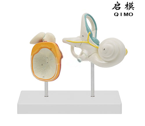 QM/J1422内耳、听小骨及骨膜放大模型由内耳、鼓膜听小骨和耳蜗等3个部件组成,并显示内耳迷路、鼓膜、听小骨和耳蜗、前庭蜗神经等结构,共有17个部位数字指示标志及对应文字说明。 尺寸:放大4倍,23×18×28cm 材质:PVC材料