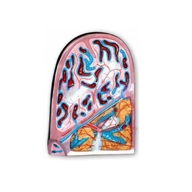 QM/J1530脾脏结构模型新鲜的脾脏状态,显示了较厚的被膜,结缔组织伸入实质形成小梁,切面大部分呈暗红色为红髓,由淋巴鞘及脾小结(淡兰色)组成,红髓由脾窦(灰兰色)及脾索(黄色)组成,还显示了脾脏的血液循环。 尺寸:放大,33×25×18cm 材质:PVC材料