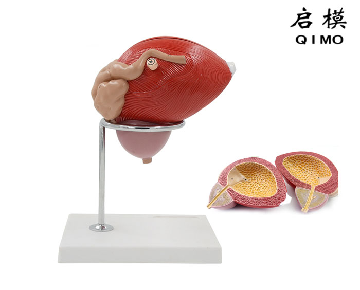 QM/J1725带数字标识膀胱前列腺放大模型放大3倍,中间纵切打开,展示了膀胱的各个解剖结构及周围组织、膀胱壁、浆膜层以及肌肉层和粘膜层的解剖结构及生理特征,也展示了尿道内口、前列腺以及部分输精管结构,共有8个部位指示数字标识标志及对应文字说明。 尺寸:放大3倍,20×15×19cm 材质:PVC材料