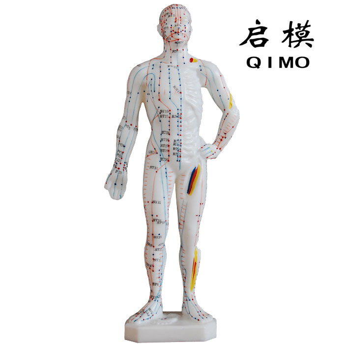 QM/LT026人体经络穴位模型显示了14条经络线和72个用汉字标明的穴位,适合初级针灸教学使用。 尺寸:高26cm 材质:PVC材料