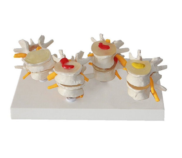 4阶段病态腰椎比较模型由四个腰椎模型组成,包括一个正常椎体组合和三组病变椎体组合,显示4阶段病变腰椎的结构和形态。