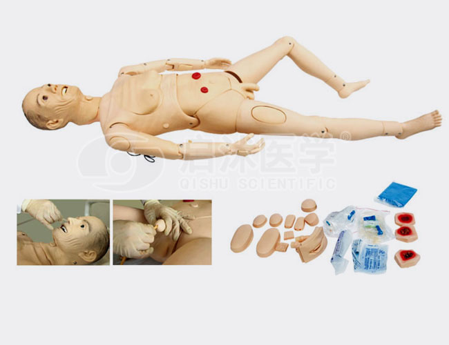 该套模型根据男性老年人的生理特征而设计,专供临床护理技能训练。全套产品由全身男性老年模拟人、无创血压模拟器等组成。具有近50项护理功能,模型采用进口PVC材料,质地优良,环保,制作逼真,易于清洗,可让护理工作者在老年患者的护理过程中,理解和关爱老年人。 功能特点: ■ 洗头发、洗脸 ■ 瞳孔观察,正常、散大、缩小直观对比 ■ 耳清洗滴药 ■ 助听器取出和插入 ■ 口腔护理、假牙护理 ■ 口鼻气管插管时,支持听诊检测插管位置 ■ 气管切开护理 ■ 吸痰法 ■ 氧气吸入法 ■ 口鼻饲法 ■ 洗胃法 ■ 手臂静脉穿刺、注射、输液(血) ■ 三角肌皮下注射 ■ 股外侧肌内注射 ■ 胸腔、骨髓、腰椎穿刺 ■ 灌肠法 ■ 男/女性导尿术 ■ 男/女性膀胱冲洗 ■ 男性前列腺检查,有包皮 ■ 造瘘引流术 ■ 结肠造瘘术 ■ 臀部肌内注射 ■ 大面积骶骨位置溃烂 ■ 癌症肿块的对比 ■ 皮褶皱对比 ■ 整体护理:擦洗、穿换衣服、冷热疗法 ■ 四肢关节逼真,模拟关节僵硬,躯干部可前倾,可坐轮椅 ﹡ 躯干-旋转,曲伸 ﹡ 颈部-旋转,曲伸,侧弯 ﹡ 肩部和臀部-内收,外展,旋转,曲伸 ﹡ 肘部-旋内,旋外膝部-旋内,旋外 ﹡ 腕部-旋内,曲伸,伸展,弯曲 ﹡ 踝部-内翻,外翻,内收,外展 ■ 无创血压测量: ﹡ 收缩压和舒张压可单独设置,精确到1mmHg ﹡ 收缩压0-300mmHg,舒张压0-300mmHg ﹡ 科罗特科夫音量可在0-9档之间进行调节。
